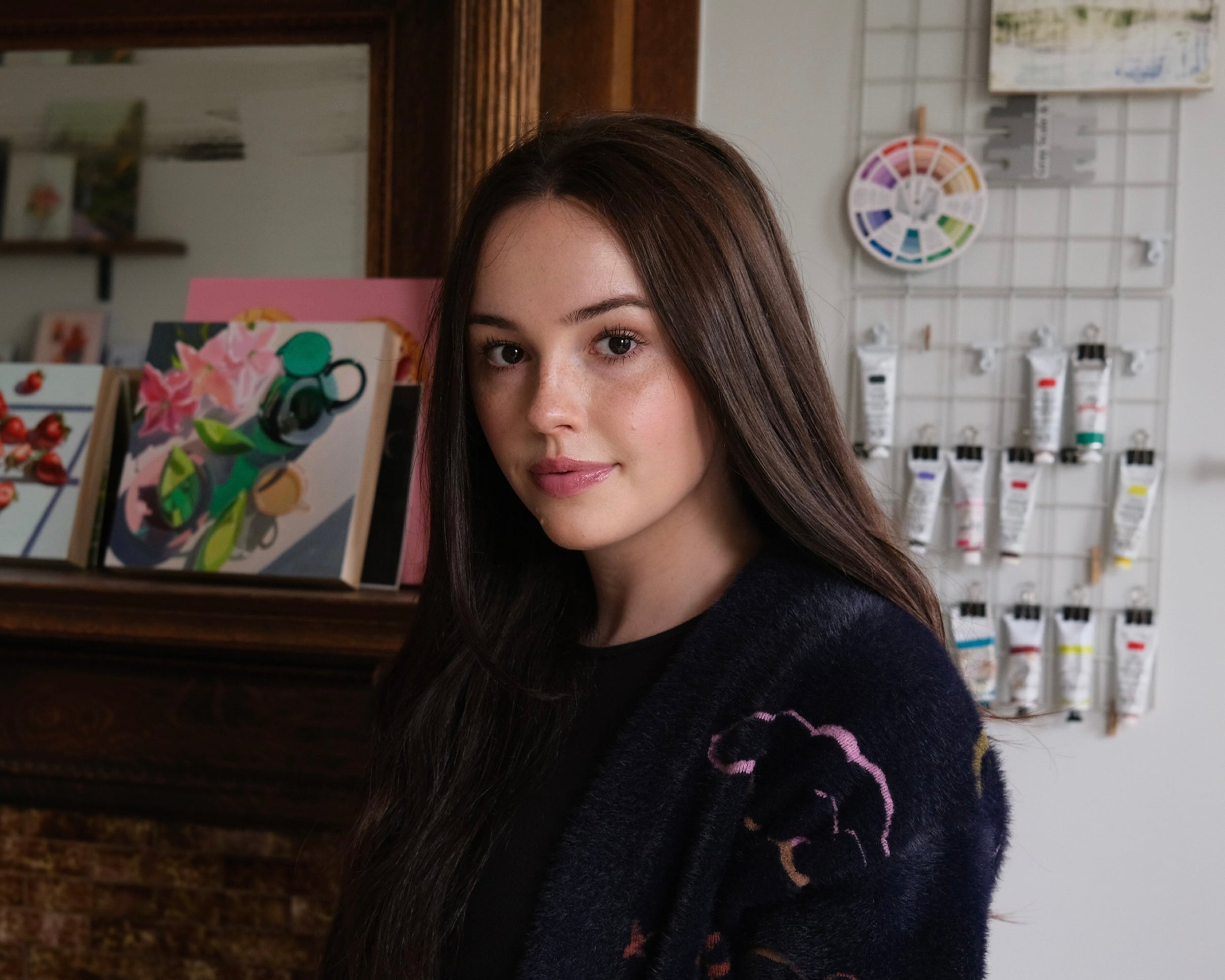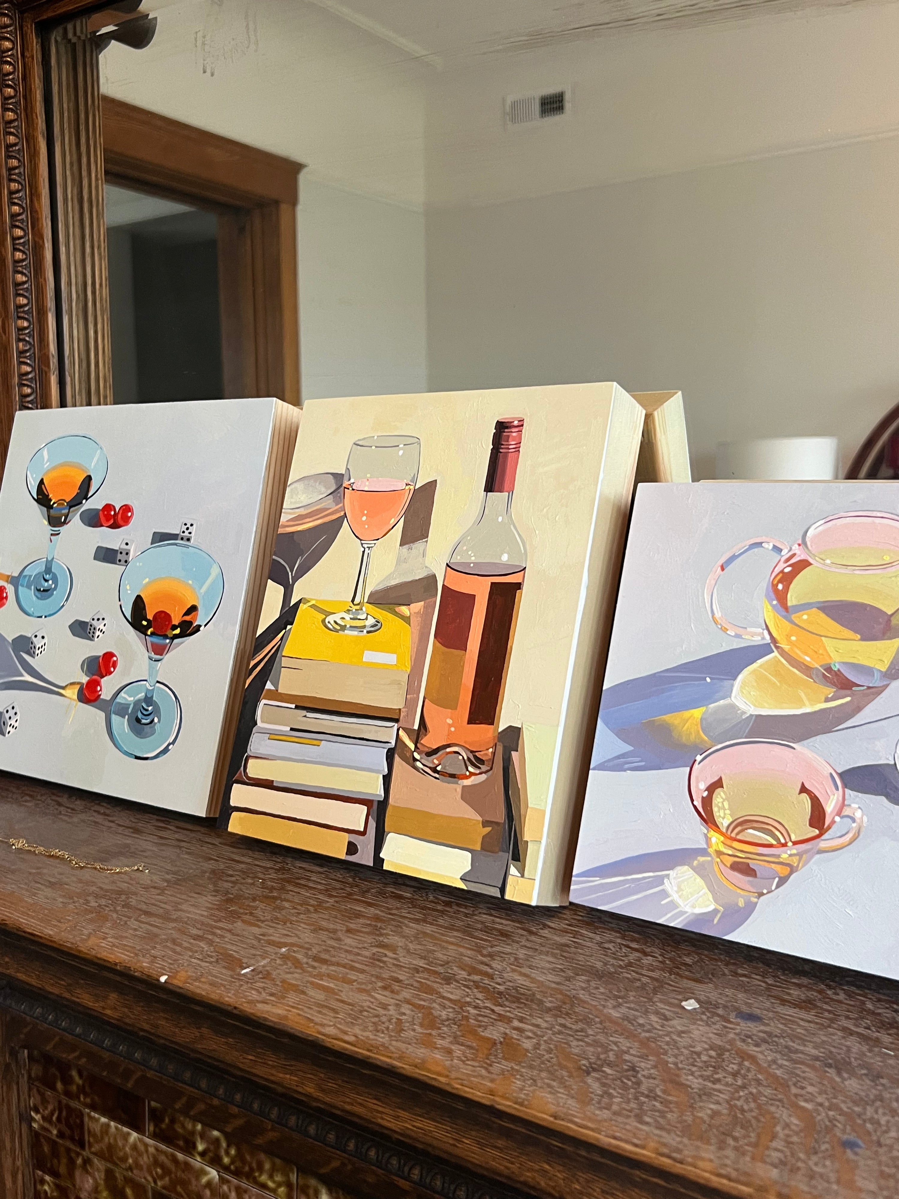 Leah is a self-taught painter who lives and works in Chicago, Illinois. In March of 2020, she picked up painting as a distraction from what was unfolding around the world. After a few months of fiddling around, accumulating a stack of terrible paintings, and learning from many mistakes, she realized she was developing a knack for working with oils and began to sell her work.